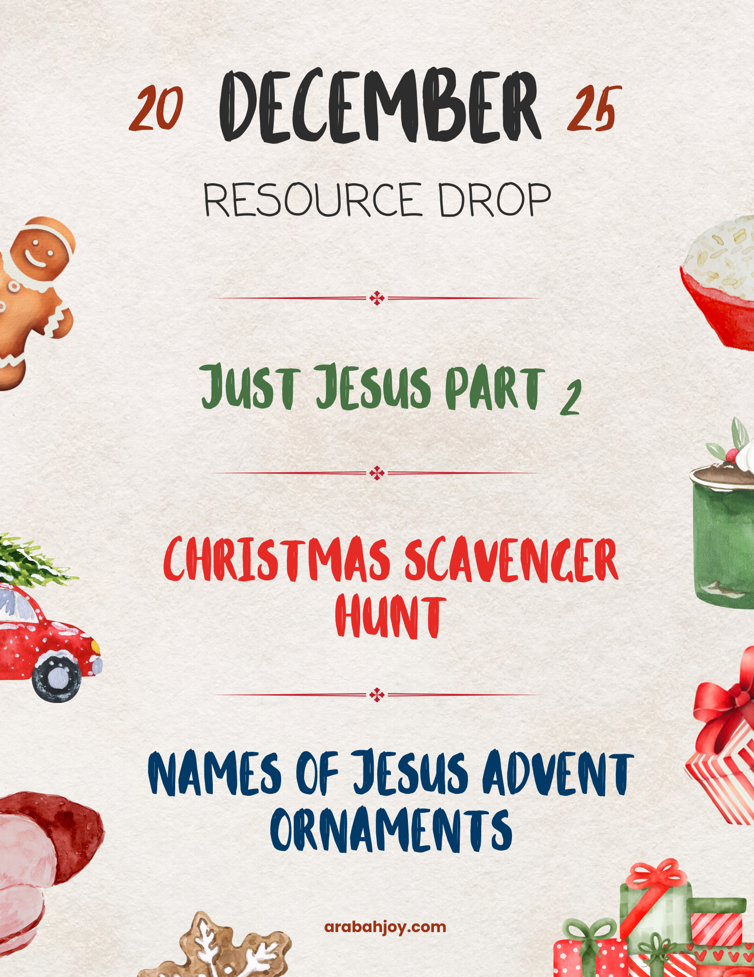 Christmas Scavenger Hunt – Bring the story of Christmas to life in a fun, interactive way! This special resource will help your family engage, explore, and experience the wonder of the season together. (Hint: it’s perfect for family gatherings or parties, creating memorable moments you won’t forget!)